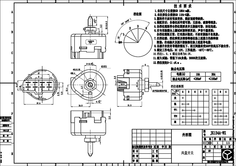 物料编码:11020078 产品名称:风挡开关 产品型号:JK134A 产品系列:空调风挡开关系列 适用车型: