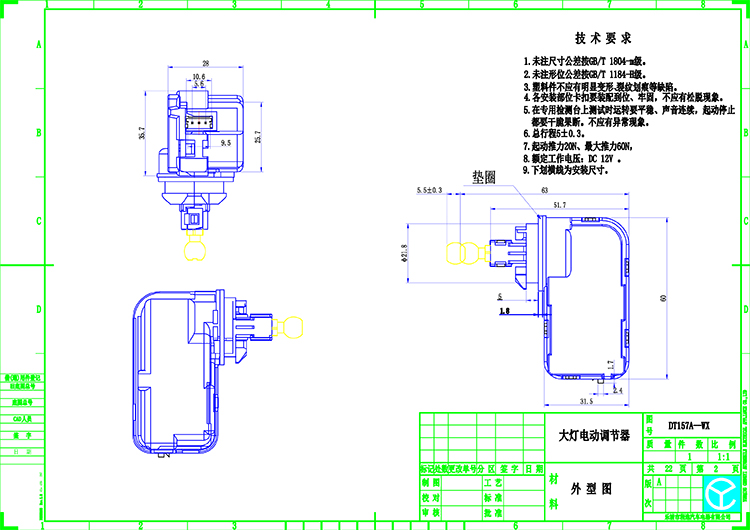 物料编码:11010025 产品名称:调光电机 产品型号:DT157 产品系列:大灯调光电机系列 适用车型: